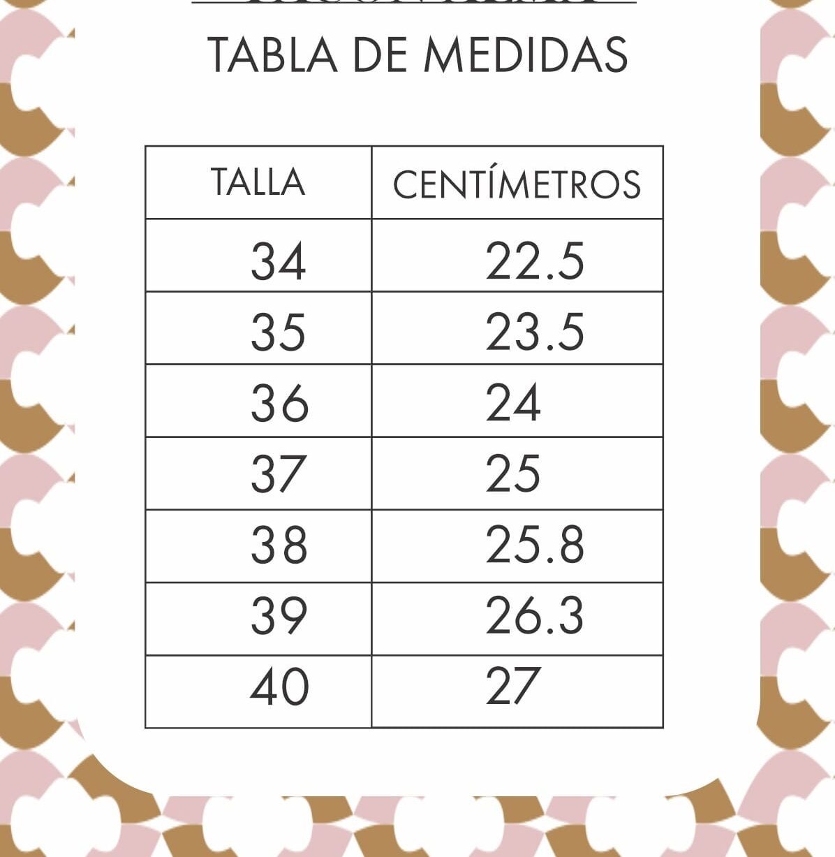 | Talla | 34, 35, 36, 37, 38, 39, 40 |